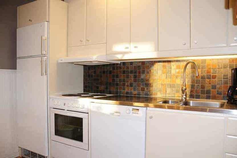 Køkkenet indeholder elkomfur med ovn, køleskab med fryser, opvaskemaskine, mikro.