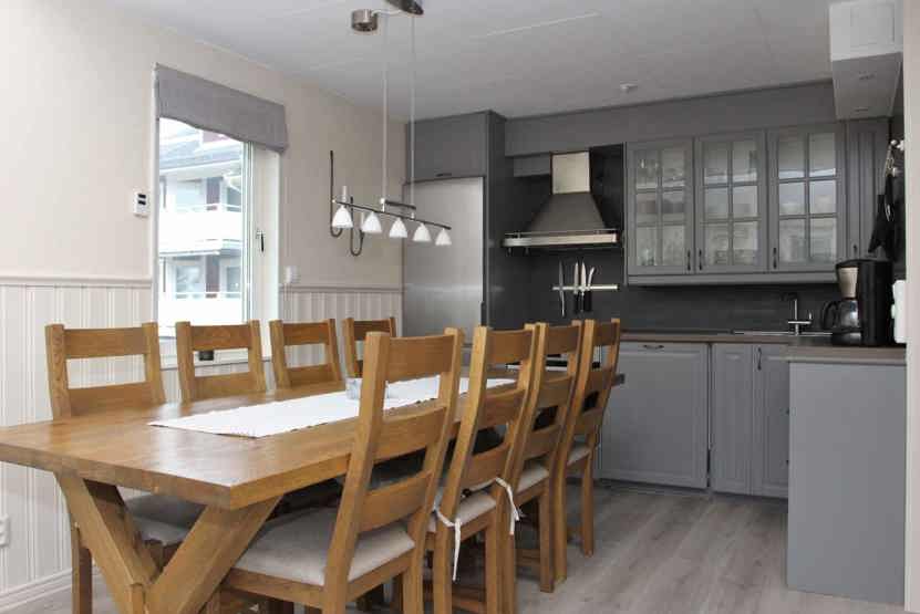Køkkenet indeholder elkomfur med ovn, køleskab med fryser, opvaskemaskine, mikro.