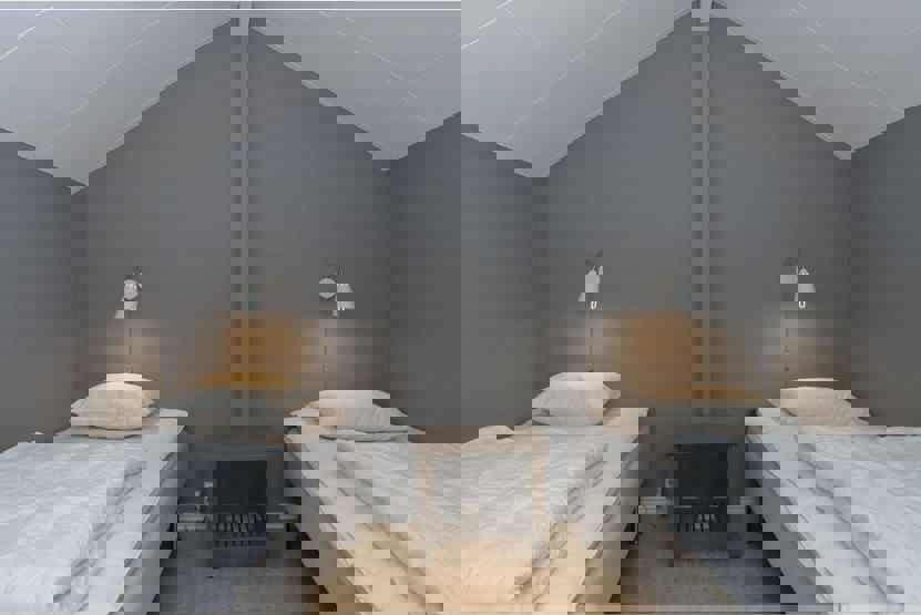 Hems med 2 enkeltsenge, 1 sovesofa (140 cm bred).