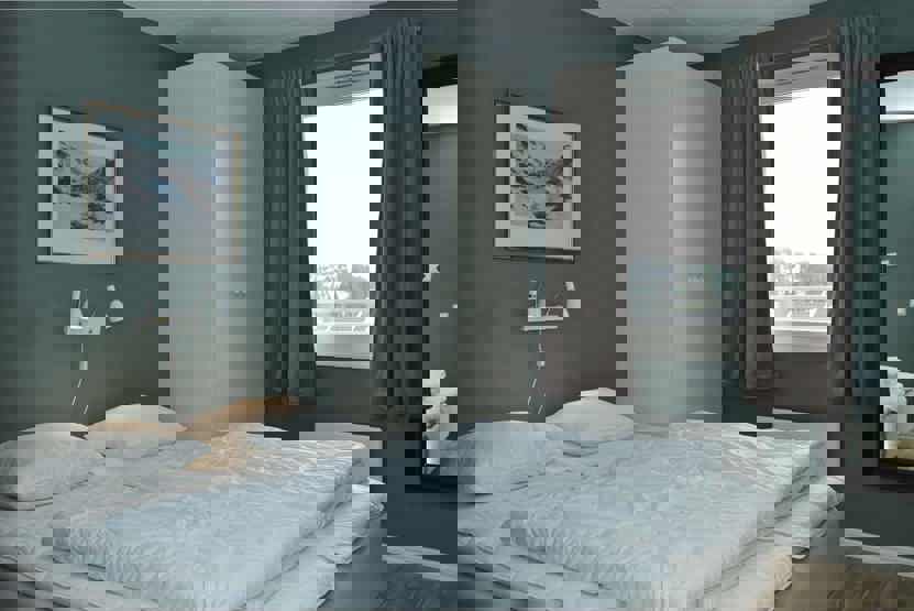 Soveværelse-1 = 1 dobbeltseng 180 cm bred. Soveværelse-2 = 1 køjeseng med 105 cm bred underkøje.