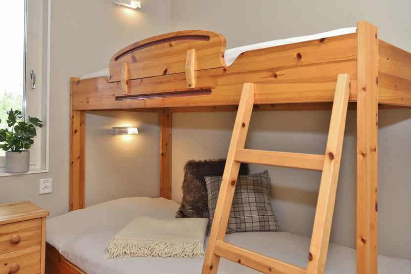 Soveværelse-1 = 1 dobbeltseng som kan laves om til to enkeltsenge. Soveværelse-2 = 1 køjeseng med 105 cm bred underkøje og 80 cm bred overkøje.