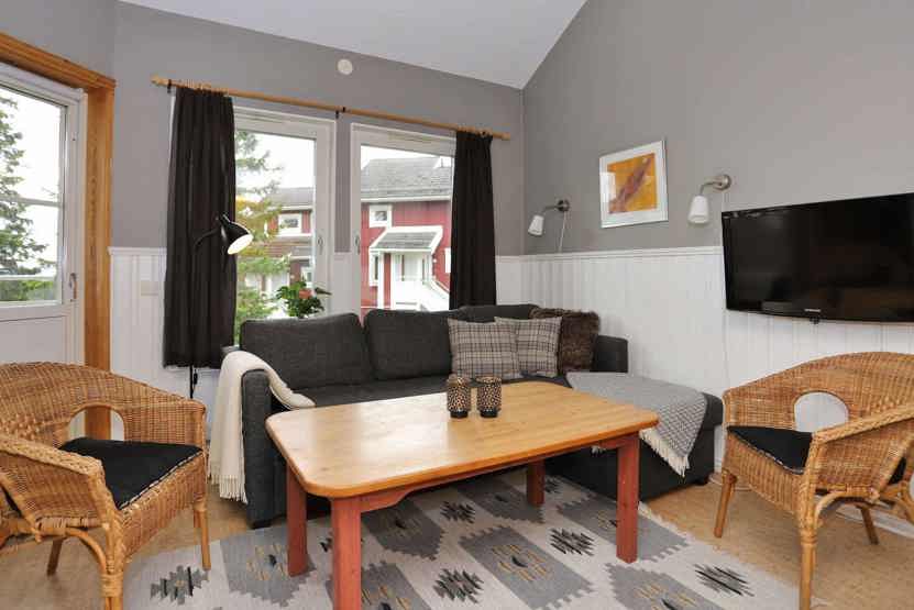 Hems med 2 enkeltsenge, sovesofa, lav lofthøjde.