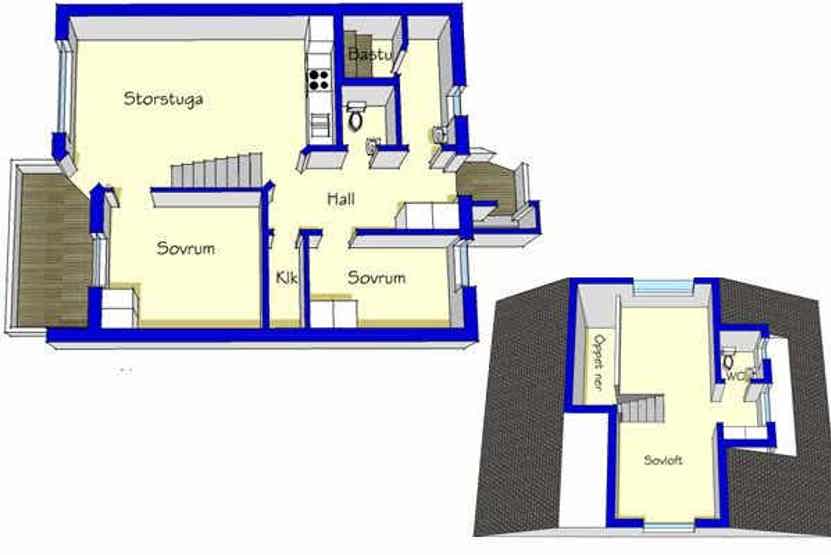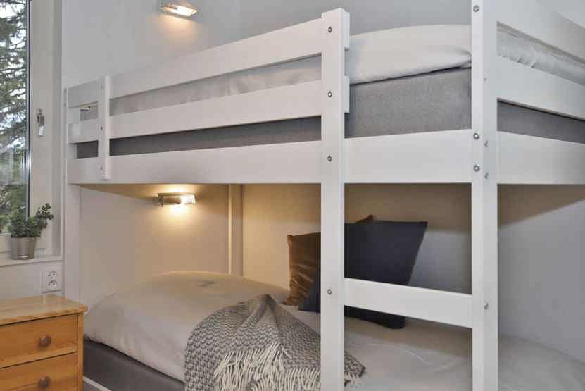 Soveværelse-1 = 1 dobbeltseng som kan laves om til to enkeltsenge. Soveværelse-2 = 1 køjeseng hvor både over og underkøje er 90 cm bred.