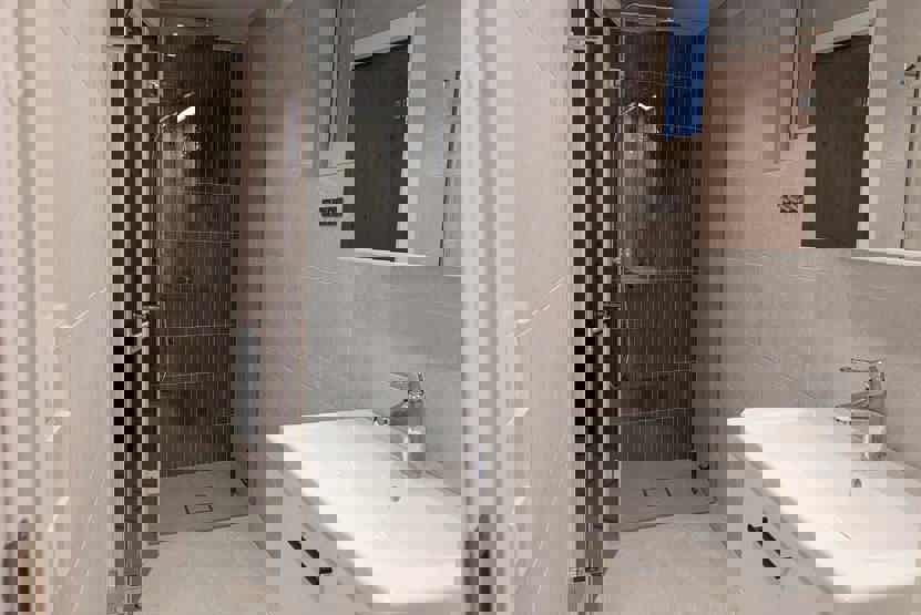 Badeværelse 1 = bruser/sauna. Badeværelse 2 = wc.