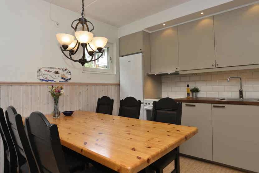 Køkkenet indeholder elkomfur med ovn, køleskab med fryser, opvaskemaskine, mikro.