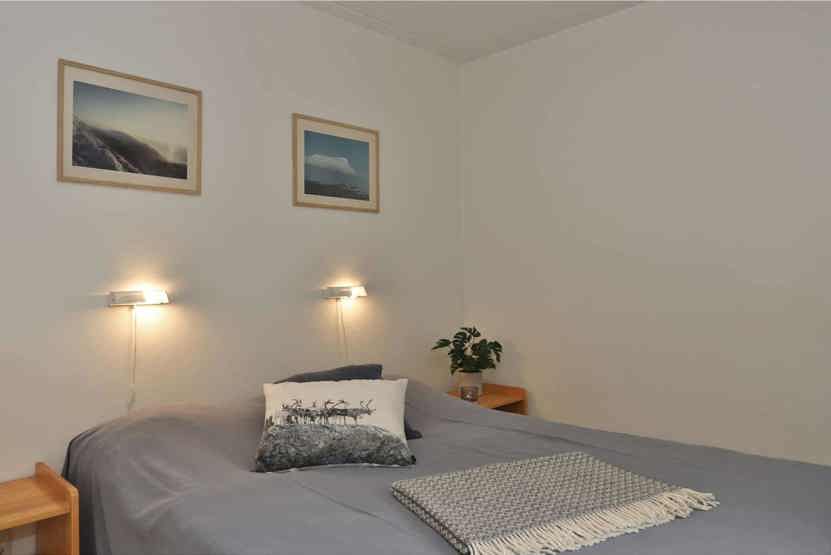 Soveværelse-1 = 1 dobbeltseng 180 cm bred. Soveværelse-2 = 1 køjeseng med 105 cm bred underkøje og 80 cm bred overkøje.