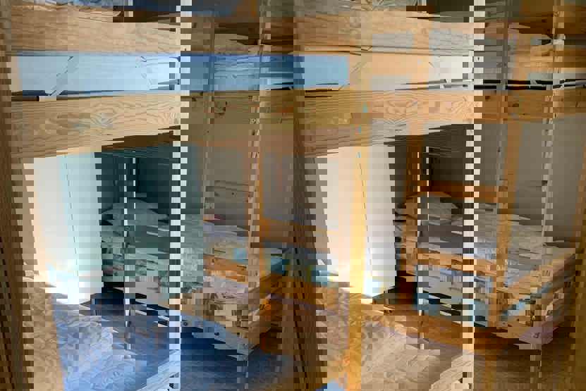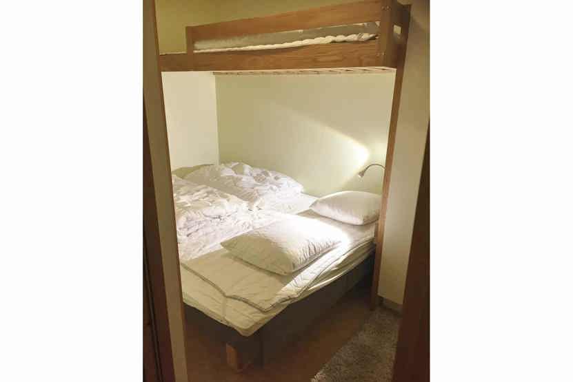 Soveværelse-1 = 1 køjeseng med 150 cm bred underkøje. Soveværelse-2 = 2 køjesenge.