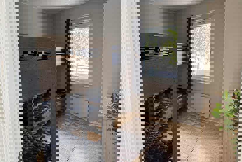 Badeværelse 1 = bruser/sauna. Badeværelse 2 = wc.