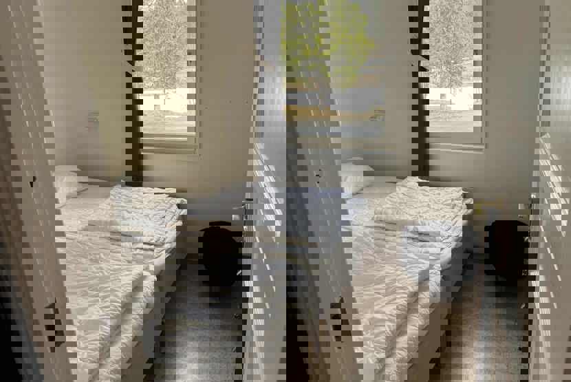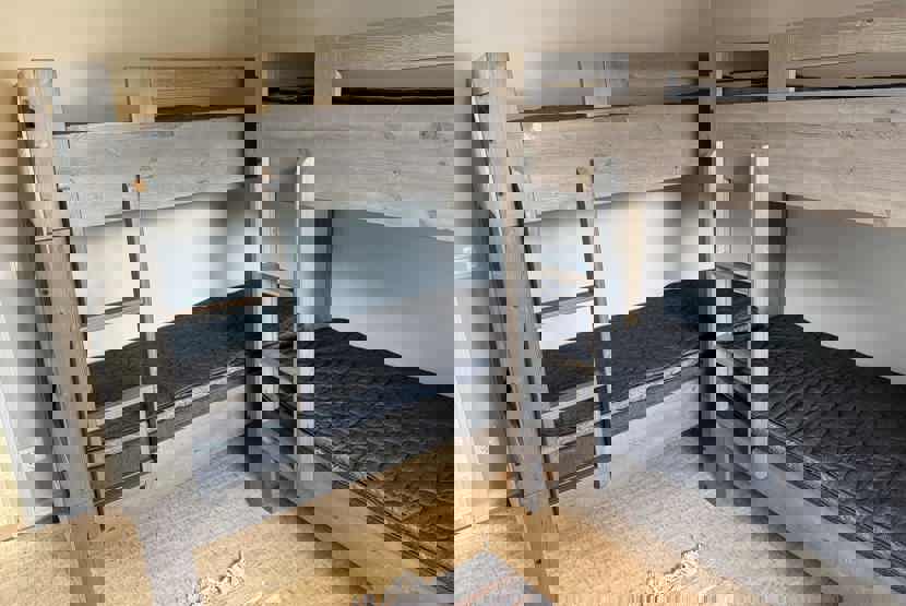 Soveværelse-1 = 1 dobbeltseng 160 cm bred. Soveværelse-2 = 2 køjesenge hvor både over og underkøje er 80 cm bred.