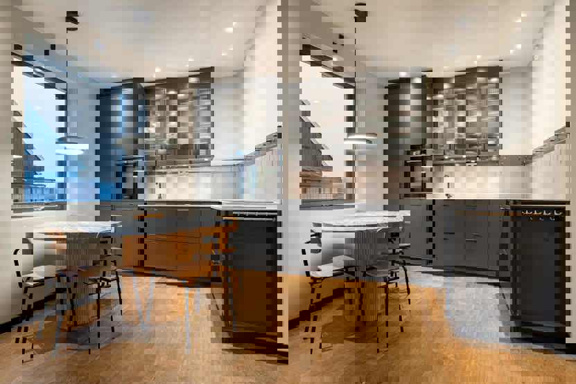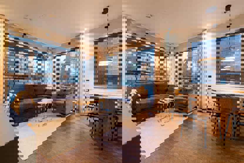 Stue med køkkenafdeling.