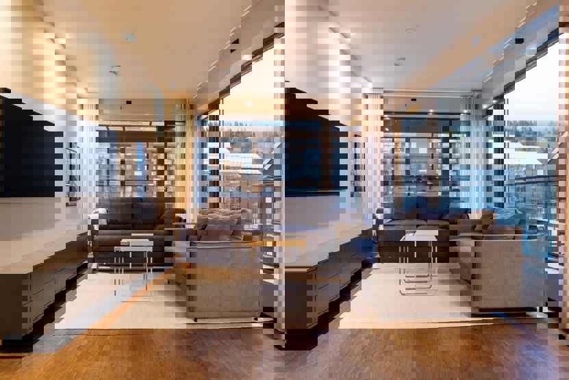 TV, vaskemaskine, balkon (der skovles ikke sne), Havemøbler, elevator findes i huset, 1 parkeringsplads, adgang til elbilopladere med type 2 stik mod betaling.