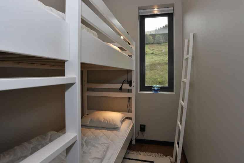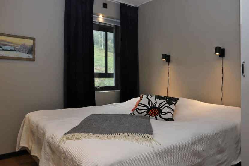 Soveværelse-1 = 1 dobbeltseng 180 cm bred. Soveværelse-2 = 1 køjeseng hvor både over og underkøje er 80 cm bred.