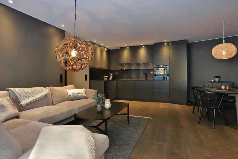 Stue med køkkenafdeling.