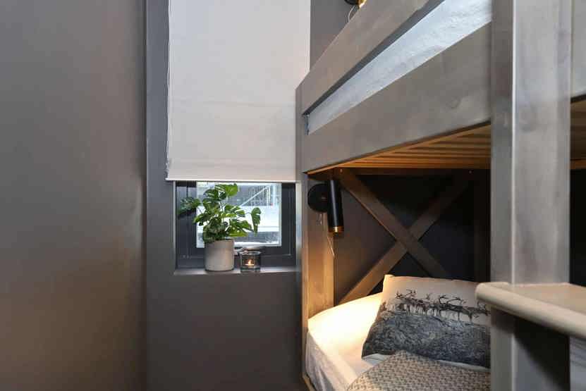 Soveværelse-1 = 1 dobbeltseng 180 cm bred. Soveværelse-2 = 1 køjeseng hvor både over og underkøje er 90 cm bred.