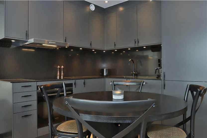 Køkkenet indeholder elkomfur med kombineret mikro-/normal ovn, køleskab med fryser, opvaskemaskine.