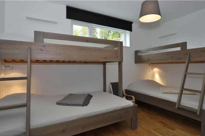 Soveværelse-1 = 1 dobbeltseng 160 cm bred. Soveværelse-2 = 2 køjesenger med 120 cm bred underkøje og 80 cm bred overkøje.