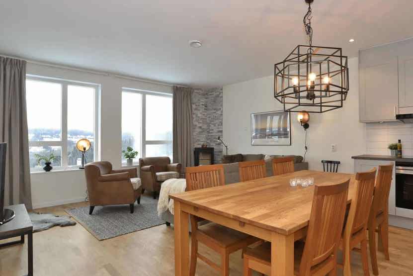 TV, brændeovn (brænde indgår ikke), vaskemaskine, tørreskab, skiopbevaring, balkon (der skovles ikke sne), 1 parkeringsplads, adgang til elbilopladere med type 2 stik mod betaling.
