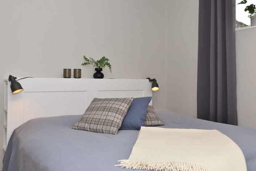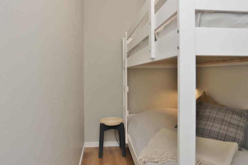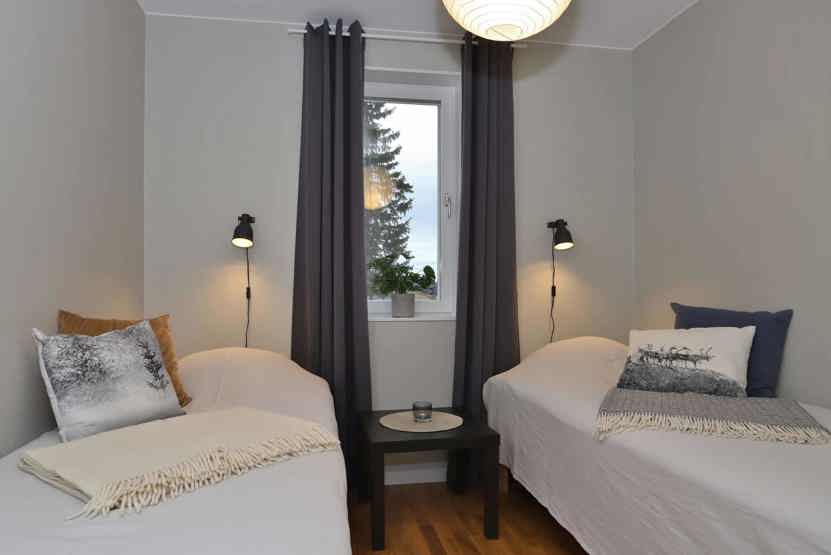 Soveværelse-1 = 1 dobbeltseng 180 cm bred. Soveværelse-2 = 2 enkeltsenge 90 cm bred. Soveværelse-3 = 1 køjeseng hvor både over og underkøje er 90 cm bred, soveværelse uden vinduer.