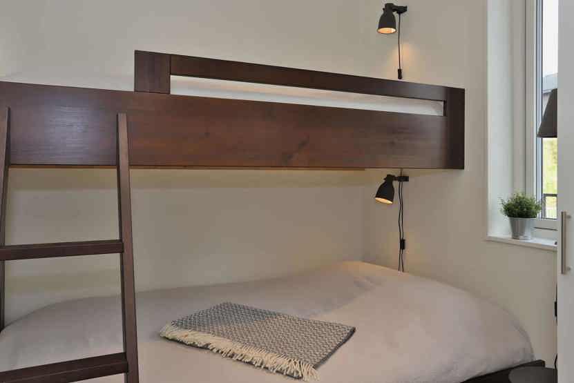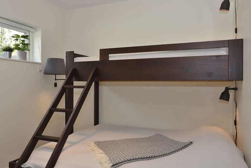 Soveværelse-1 = 1 dobbeltseng 180 cm bred. Soveværelse-2 = 1 køjeseng med 160 cm bred underkøje. Soveværelse-3 = 1 køyeseng med 120 cm bred underkøye og 80 cm bred overkøye.