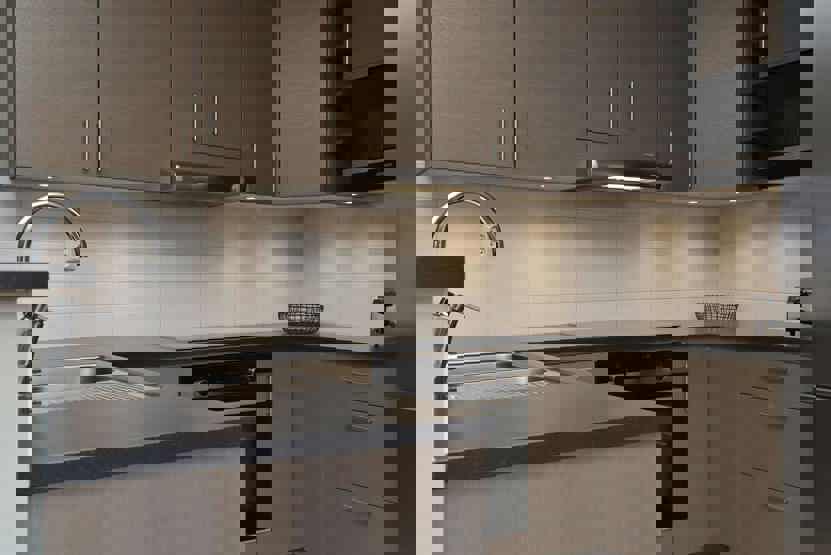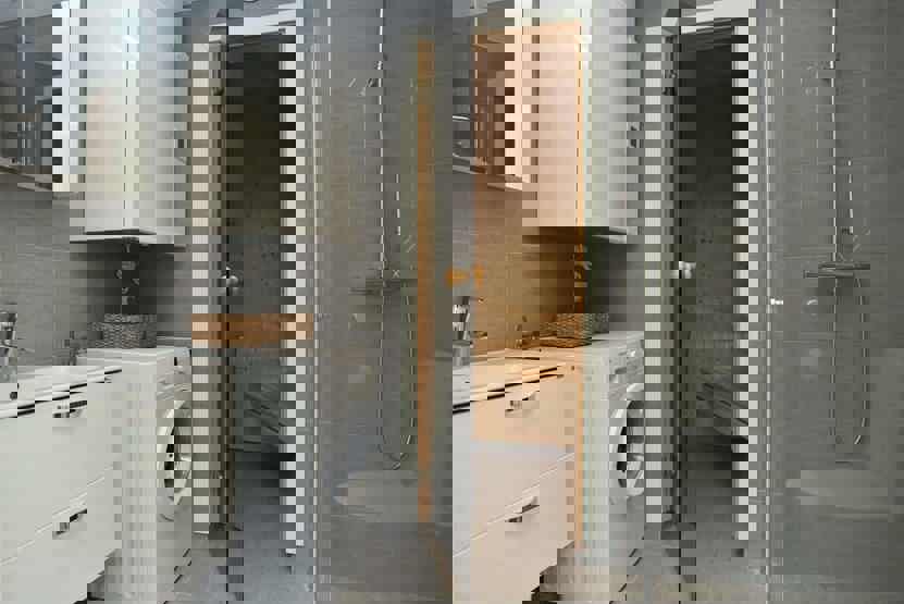 Køkkenet indeholder komfur med ovn, køleskab og fryser, opvaskemaskine, mikro.