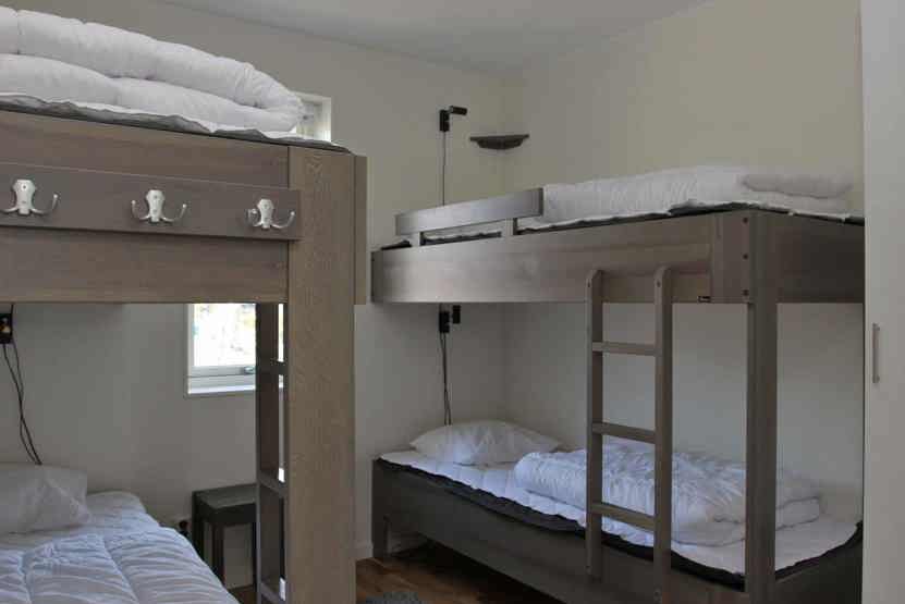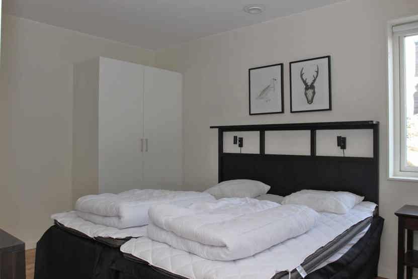 Soveværelse-1 = 1 dobbeltseng 160 cm bred. Soveværelse-2 = 2 køjesenge hvor både over og underkøje er 80 cm bred.