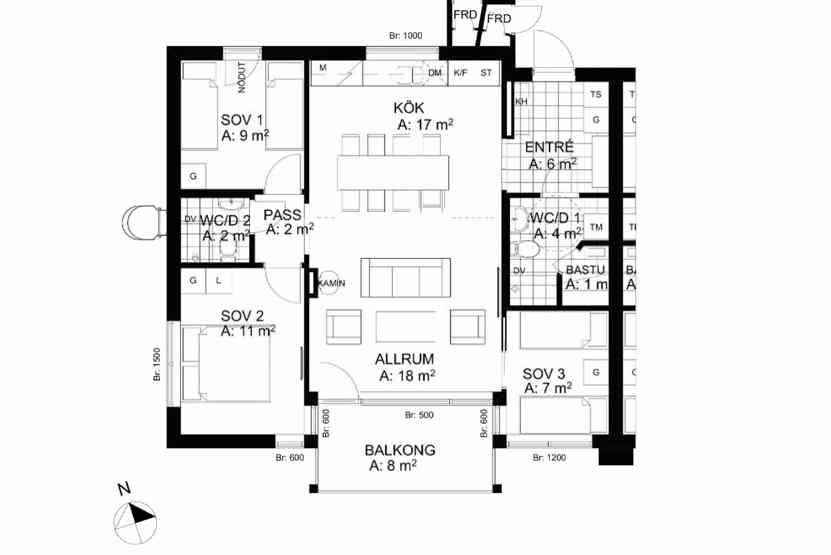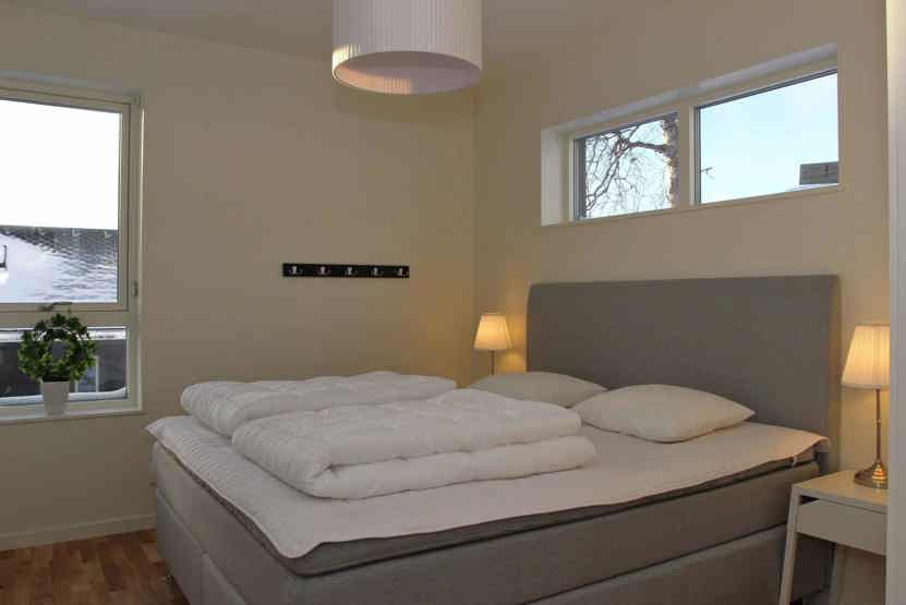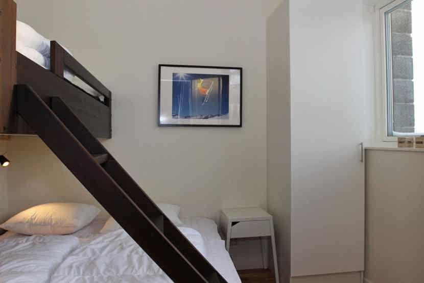 Soveværelse-1 = 1 dobbeltseng 180 cm bred. Soveværelse-2 = 2 køjesenge hvor både over og underkøje er 80 cm bred. Soveværelse-3 = 1 køjeseng med 160 cm bred underkøje.
