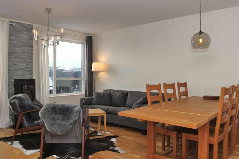 TV, På grund af diverse ulejligheder, må brændeovnen ikke længere bruges, vaskemaskine, tørreskab, balkon (der skovles ikke sne), skiopbevaring, 1 parkeringsplads med motorvarmere.