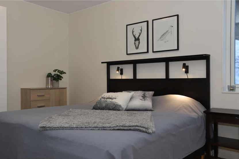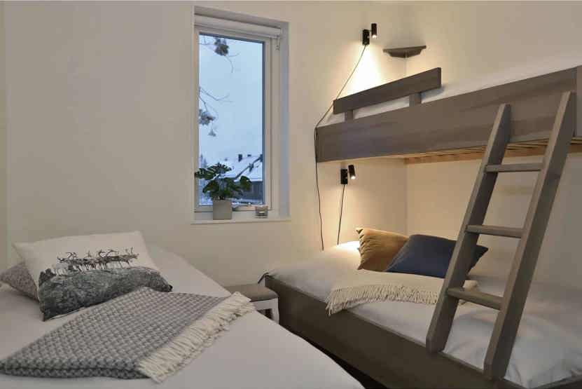 Soveværelse-1 = 1 dobbeltseng 180 cm bred. Soveværelse-2 = 1 køyeseng med 120 cm bred underkøye og 80 cm bred overkøye, 1 enkeltseng.