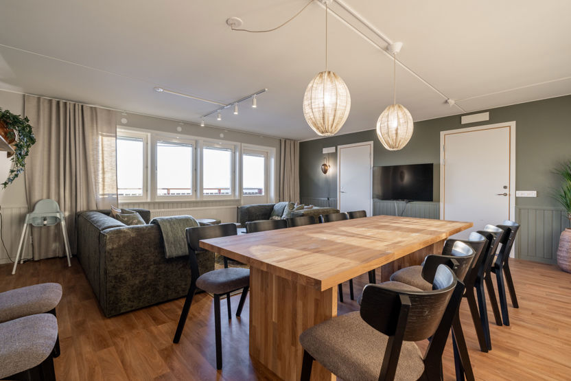 Ljus och rymlig lägenhet med balkong och plats för upp till 12 personer. Öppen planlösning med utrymme att umgås. Välutrustad köksavdelning med spis, diskmaskin, micro, kyl och frys. Stor matplats och en rymlig TV - hörna. Sovrum 1 har en dubbelsäng, sovrum 2 och 3 har vardera 2 våningssängar. Sovrum 4 har en våningssäng. Barnsäng och barnstol finns i lägenheten. 2 WC, 2 duschar och en härlig värmande bastu. Torkskåp och motorvärmaruttag. Rökning är ej tillåtet. Gemensamma elbilsladdare finns på området . Laddning av elbilar är endast tillåtet vid avsedda laddningsstolpar.