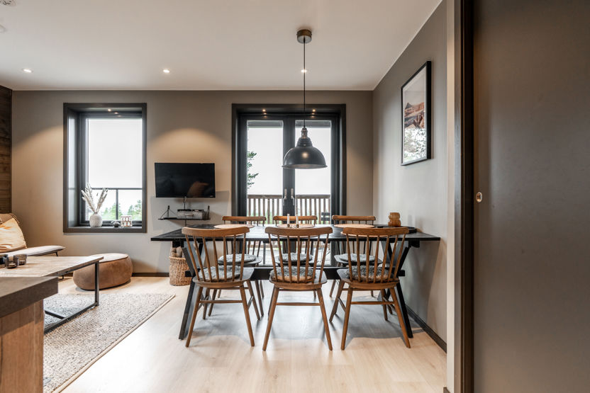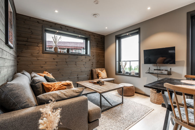 Härlig hörnlägenhet med balkong i Alpinbyn för upp till 6 personer. Ljus, med fönster i alla sovrum och vacker utsikt mot fjällen.Öppen planlösning med plats att umgås. Allrum med soffa och TV. Köksavdelning, stor matplats. Köksavdelningen är utrustad med spis, diskmaskin, micro, kyl och frys.Sovrum 1 har en dubbelsäng, sovrum 2 och 3 har våningssäng. Ett av sovrummen har bredare underbädd.Lägenheten har en TV.1 WC med dusch och en skön bastu att krypa in i efter kalla dagar. Torkskåp, tvättmaskin. Golvvärme i hela lägenheten. Parkeringsplats. Rökning och husdjur är ej tillåtet i denna lägenhet.Laddning av elbilar är endast tillåtet vid avsedda laddningsstolpar. Avresestäd ingår vid avresa.