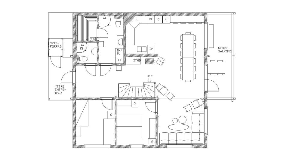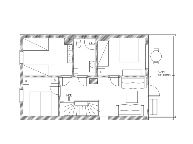 Fräsch lägenhet fördelad på 2 våningar med 2 balkonger och plats för upp till 15 personer. Sovrum 1 och 2 har en dubbelsäng i varje rum, sovrum 3 har en dubbelsäng och en våningssäng, sovrum 4 har två våningssängar, sovrum 5 har en våningssäng och en enkelsäng. Stort allrum med matplats, TV - hörna och en mysig braskamin. Välutrustat kök med spis, diskmaskin, micro, 2 kylar och 2 frysar. På övre våningen finns ytterligare en soffgrupp med TV. 3 WC, 3 duschar, och en värmande bastu, torkskåp. Rökning och husdjur är ej tillåtet i denna stuga. Stolpe med 2 st uttag för laddning av elbilar finns till lägenheten. Laddning ingår i hyran.Avresestäd ingår i detta boende.