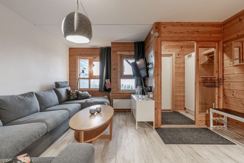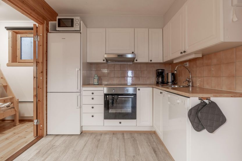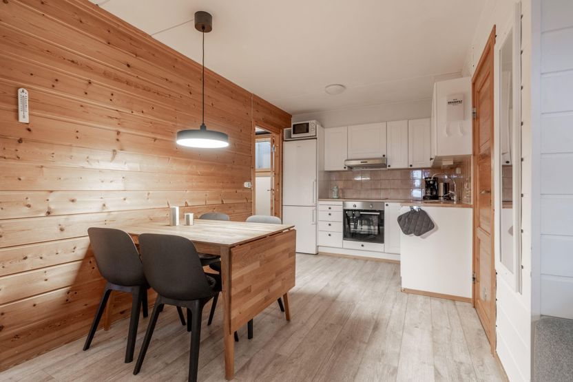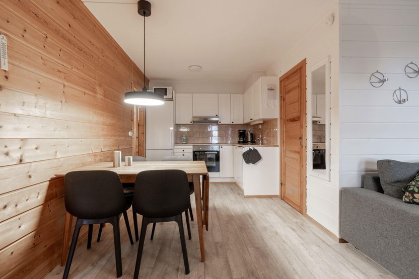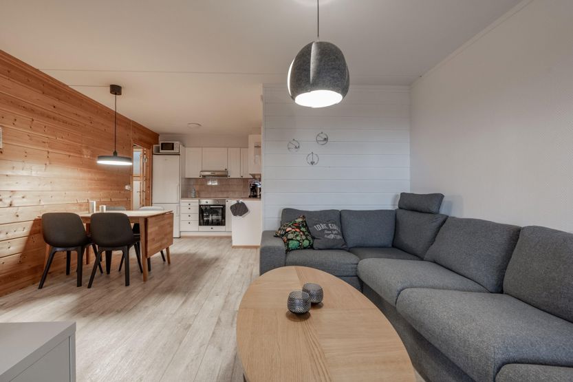 Mysig lägenhet i markplan i Dähliebyn med plats för upp till 6 personer. Öppen planlösning med utrymme att umgås. Välutrustad köksavdelning med spis, diskmaskin, kyl och frys. Matplats och en rymlig tv-hörna. Sovrum 1 har en våningssäng, sovrum 2 har två våningssängar. Badrum med dusch och en värmande bastu. Boendet har torkskåp.