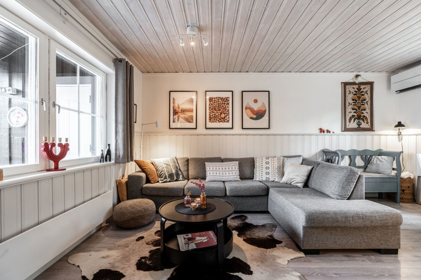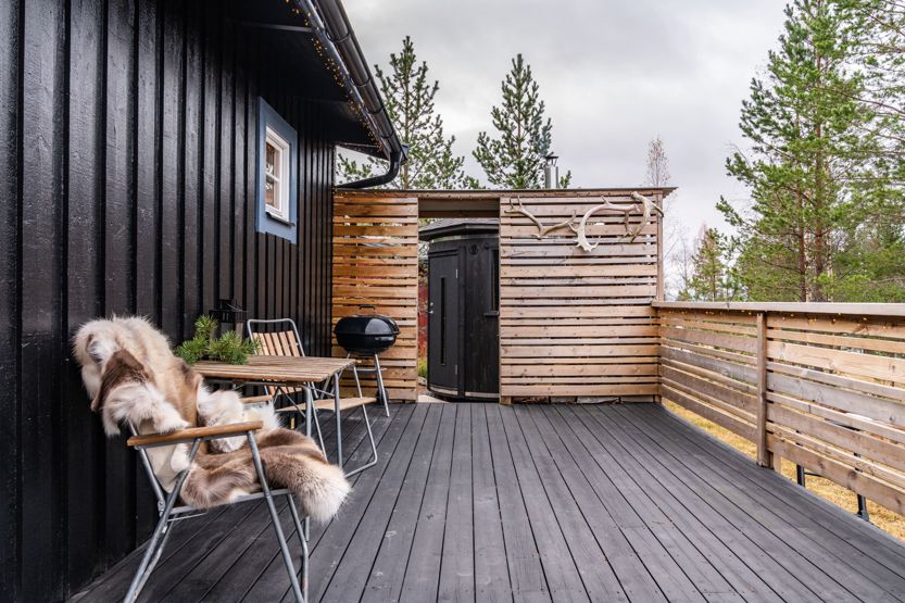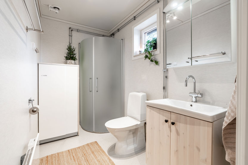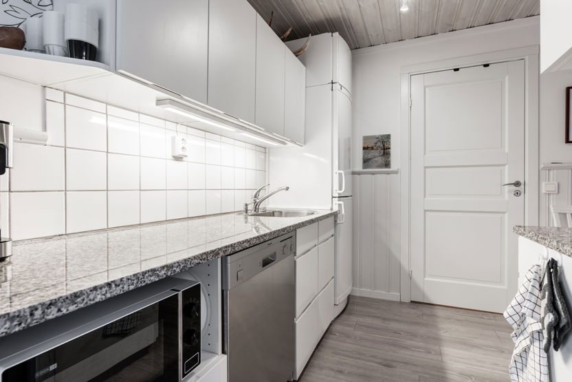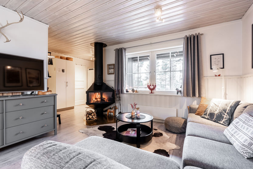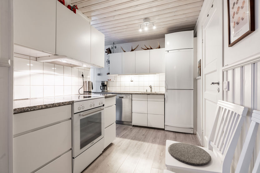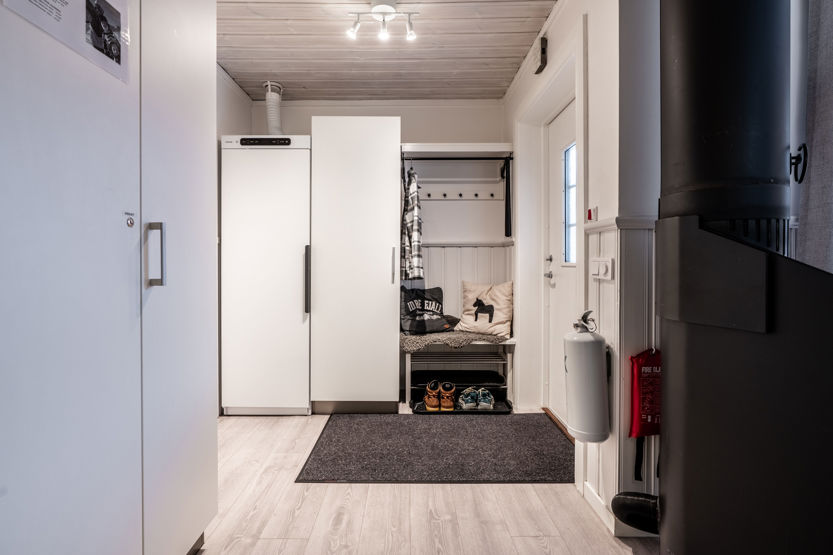 Køkkenet har komfur, opvaskemaskine, mikrobølgeovn, køleskab og en lille fryser. Toilet med bruser og separat sauna. Tørreskab og stikkontakt til motorvarmer. Rygning og kæledyr er ikke tilladt.Opladning af elbiler er kun tilladt ved anviste ladestandere.