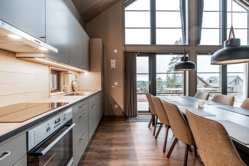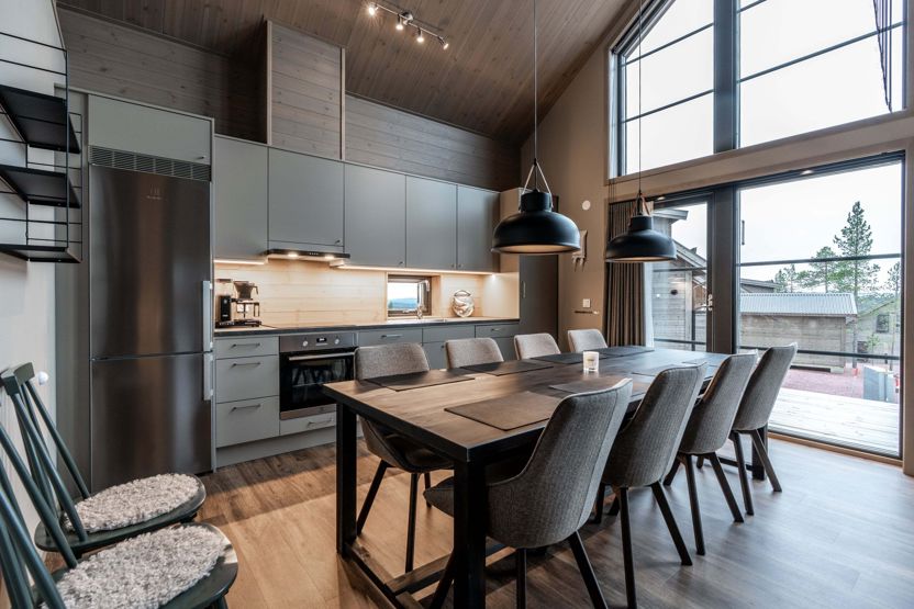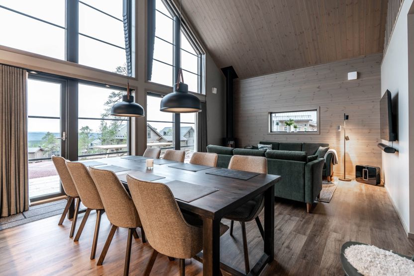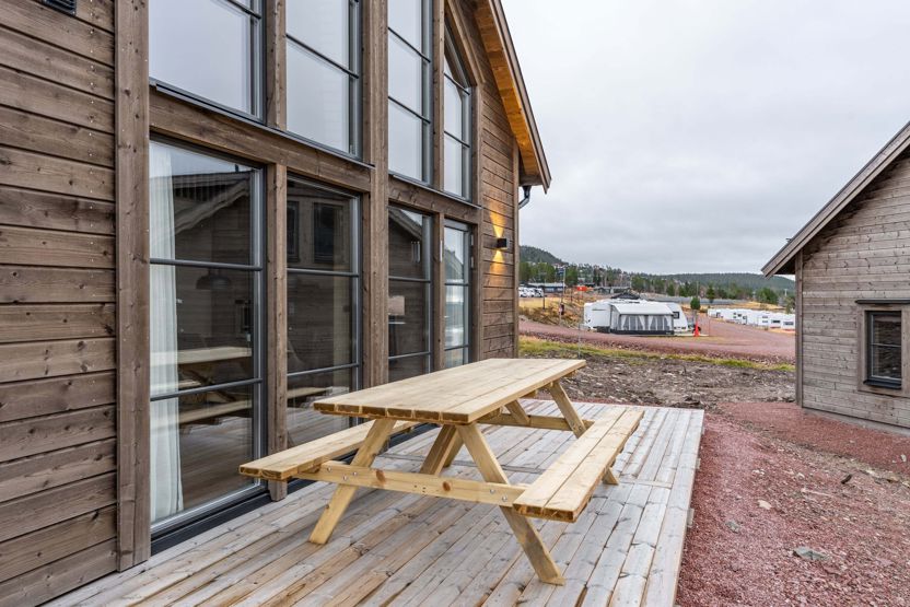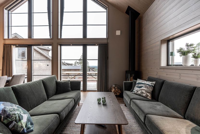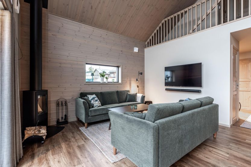 Stuga i Fjällvidds med plats för upp till 8 personer. Här bor du i ett modernt och ljust boende med bastu, braskamin och rymliga sociala ytor med stora fönster som släpper in gott om ljus. På vintern har du nära till både skidbackar och längdspår, och under sommaren väntar vandring och cykling på fjället. Kök och allrum Köket är välutrustat med diskmaskin, kyl och frys. Intill finns matplats och en trivsam social yta där du kan koppla av framför braskaminen efter en dag utomhus. Sovrum Stugan har 4 sovrum. 3 av sovrummen har dubbelsäng och 1 sovrum har 1 våningssäng. På loftet finns dessutom 2 enkelsängar som extra sovplats. Badrum och bastu Stugan har 2 badrum, båda med dusch. I anslutning till ett av badrummen finns bastu som inbjuder till avkoppling samt tvättmaskin för extra bekvämlighet. Bra att veta Torkskåp finns i hallen. Elbilsladdning finns vid boendet och är tillgänglig mot en avgift. Terrass med plats att njuta av fjälluften.