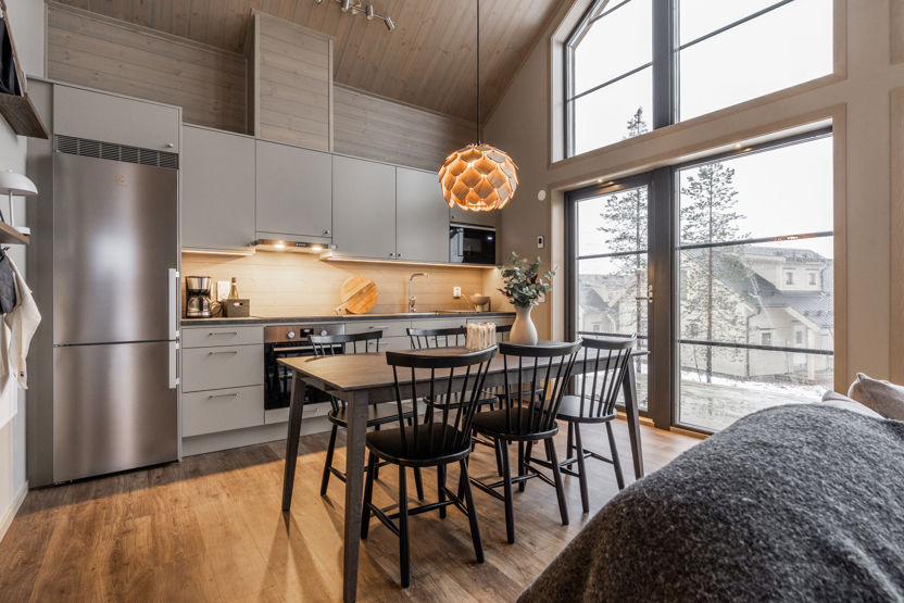 Stuga i Fjällvidd med plats för upp till 8 personer. Boendet har braskamin, bastu och ljusa sociala ytor i öppen planlösning. På vintern bor du med närhet till skidbackar och längdspår, på sommaren väntar cykelleder och vandring på fjället. Kök