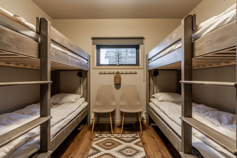 Sovrum 1 har 1 dubbelsäng. Sovrum 2 har 2 enkelsängar. Sovrum 3 har 2 våningssängar.