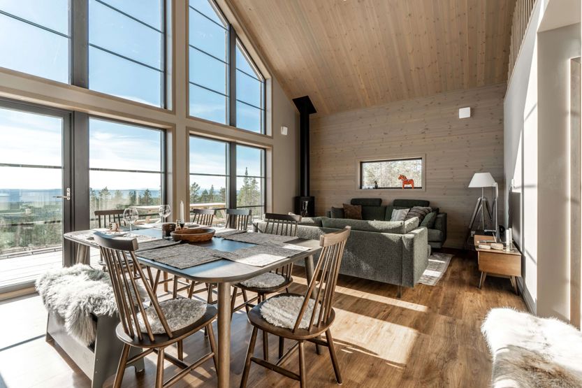 Stuga i Fjällvidds med plats för upp till 8 personer. Här bor du i ett modernt och ljust boende med bastu, braskamin och rymliga sociala ytor med stora fönster som släpper in gott om ljus. På vintern har du nära till både skidbackar och längdspår, och under sommaren väntar vandring och cykling på fjället.