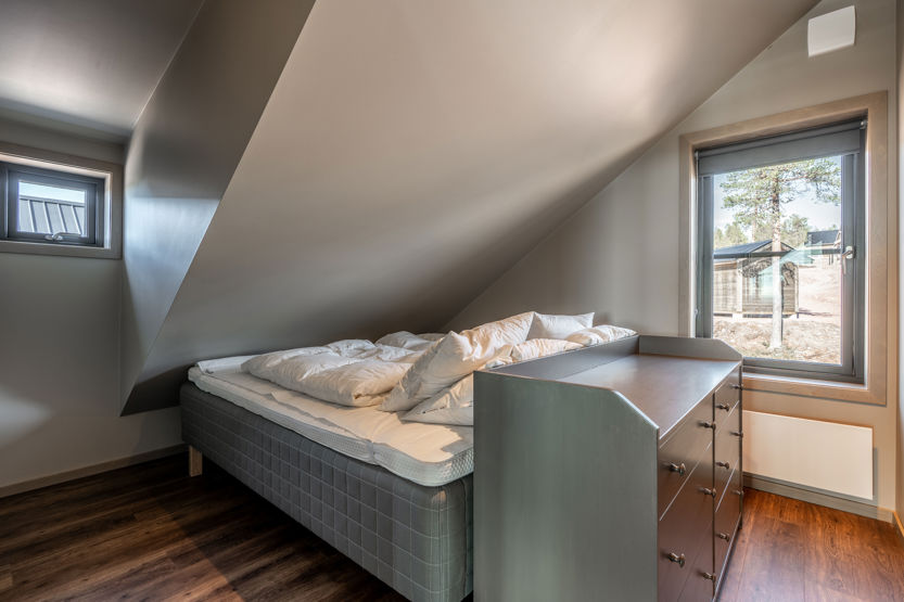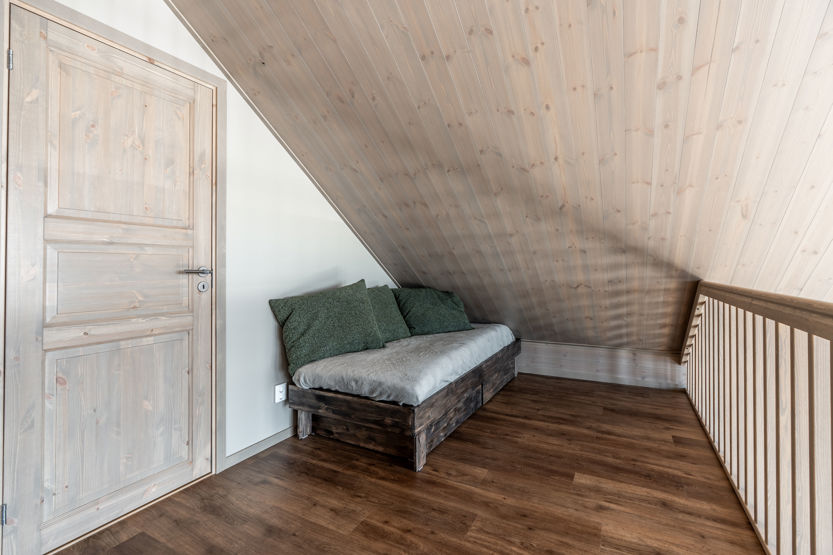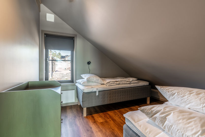 Stugan har 4 sovrum. 3 av sovrummen har dubbelsäng och 1 sovrum har 1 våningssäng. På loftet finns dessutom 2 enkelsängar som extra sovplats.