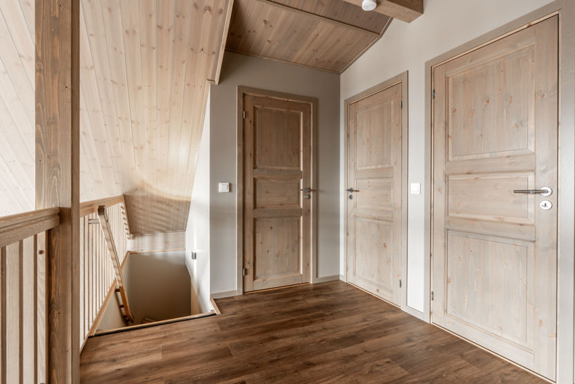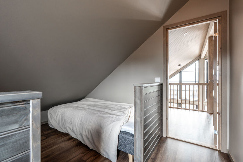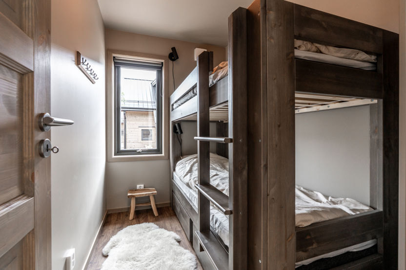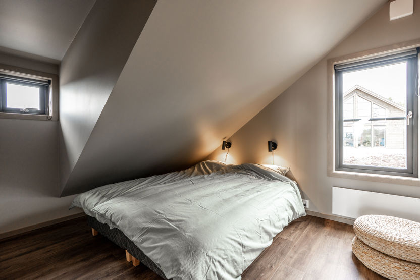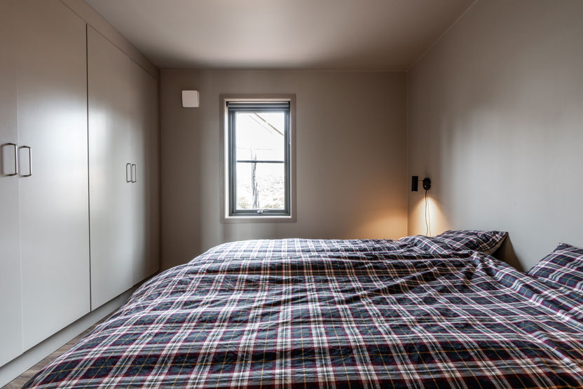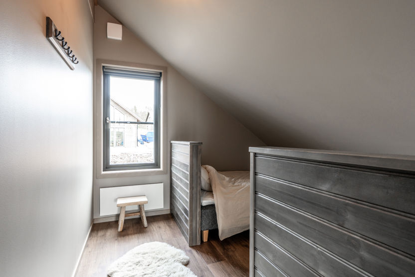 Huset har 4 sovrum. På entréplan finns sovrum 1 med dubbelsäng och sovrum 2 med våningssäng. På loftet finns sovrum 3 med dubbelsäng och sovrum 4 med två enkelsängar.