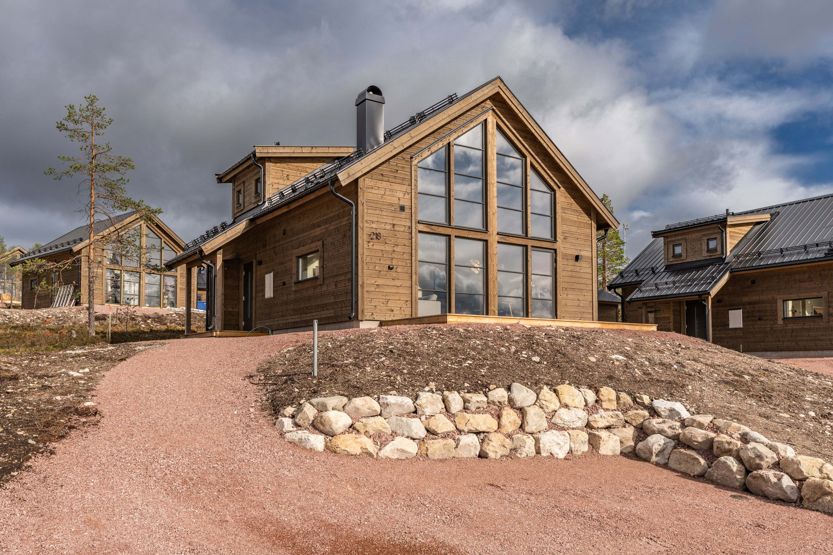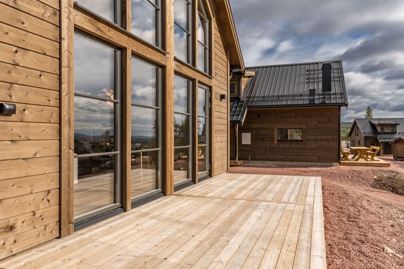 Nybyggt och modernt fjällhus med plats för upp till 8 personer. Här bor ni nära skidbackar på vintern och cykelleder på sommaren, i ett fräscht boende med stora fönster och utsikt mot fjällen.