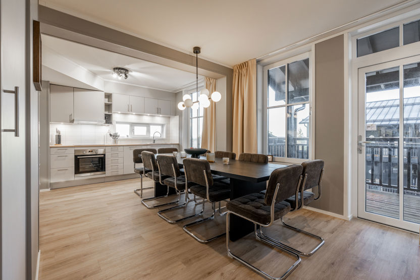 Køkkenet er blandt andet udstyret med opvaskemaskine og giver gode muligheder for at lave mad og spise sammen. Wifi er tilgængeligt i hele lejligheden. Uden for huset er der ladestandere til dem, der rejser med elbil. Rygning er ikke tilladt. Lejligheden er tilgængelig til leje fra 19. december 2025.