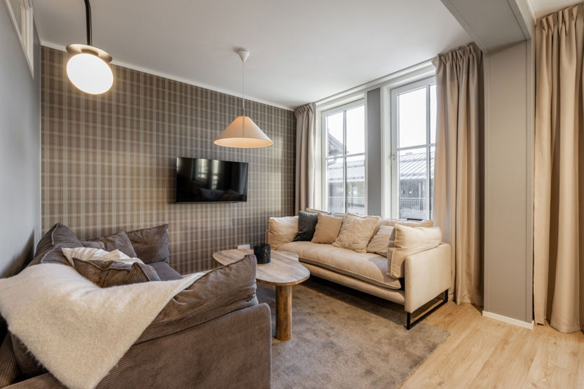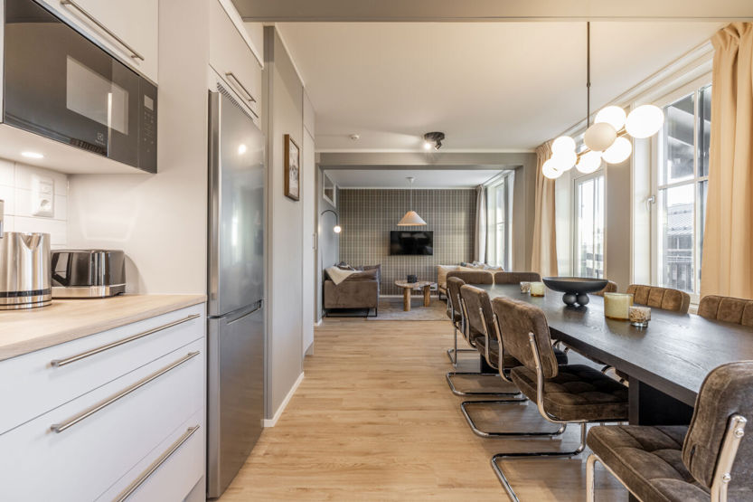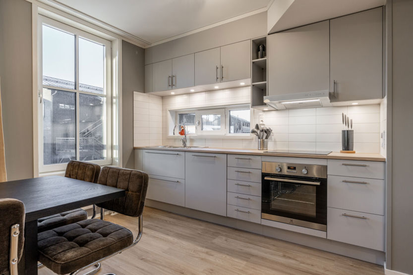 Køkkenet er udstyret med opvaskemaskine og giver gode muligheder for at lave mad og spise sammen. Wi-Fi er tilgængeligt i hele lejligheden. Uden for huset er der ladestandere til dem, der rejser med elbil. Rygning er ikke tilladt. Lejligheden er tilgængelig til leje fra 20. december 2025.