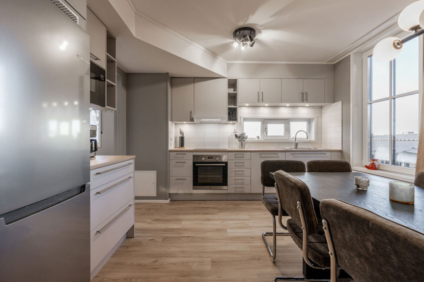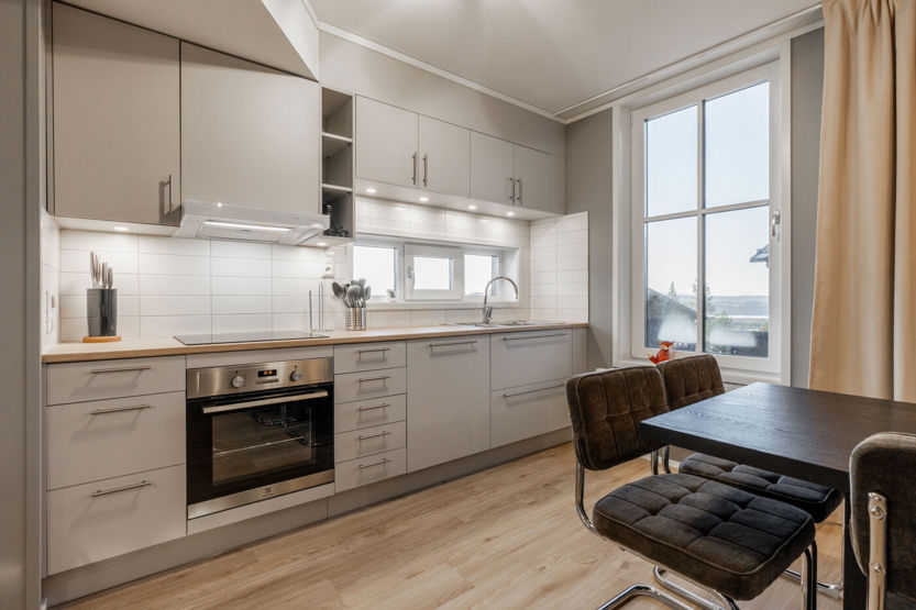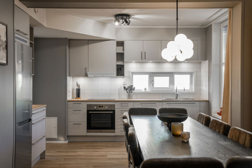 Køkkenet er udstyret med opvaskemaskine og giver gode muligheder for at lave mad og spise sammen. Wifi er tilgængeligt i hele lejligheden. Uden for huset er der ladestandere til dem, der rejser med elbil. Rygning er ikke tilladt. Lejligheden er tilgængelig til leje fra 20. december 2025.