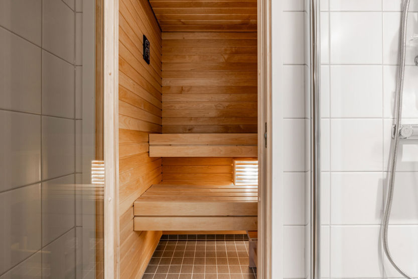 Lejligheden har to separate toiletter, to brusere og egen sauna.