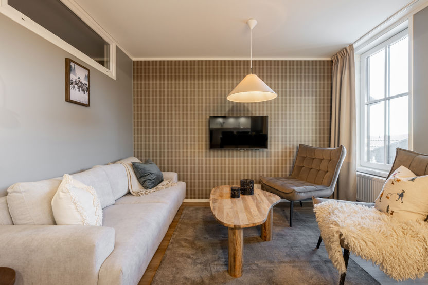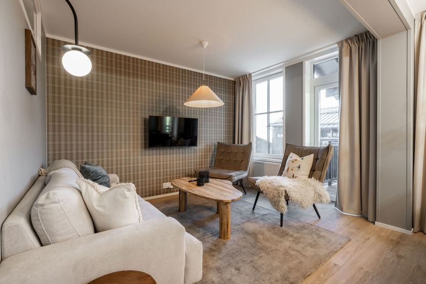 Lejlighed på 57 kvadratmeter. Denne hyggelige lejlighed på 57 kvadratmeter er ideel til familier eller små grupper, der søger komfortabel indkvartering i et bjergrigt miljø. Der er to soveværelser - det ene er møbleret med en dobbeltseng og det andet med to køjesenge, hvilket giver i alt seks sovepladser. Badeværelset er udstyret med toilet, bruser og privat sauna. Lejligheden har et funktionelt køkken med opvaskemaskine og alt det basale køkkenudstyr, du har brug for til at tilberede lækre måltider. Wifi er tilgængeligt i hele boligen. Uden for huset er der elbilopladere til dem, der rejser med elbiler. Rygning er ikke tilladt. Lejligheden er tilgængelig til leje fra 21. december 2025.