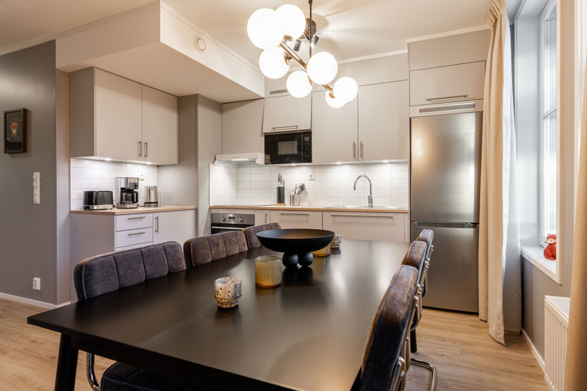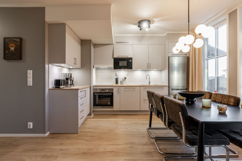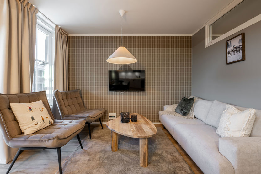 Lejlighed på 57 kvadratmeter. Denne hyggelige lejlighed på 57 kvadratmeter er ideel til familier eller små grupper, der søger komfortabel indkvartering i et bjergrigt miljø. Der er to soveværelser - det ene er møbleret med en dobbeltseng og det andet med to køjesenge, hvilket giver i alt seks sovepladser. Badeværelset er udstyret med toilet, bruser og privat sauna. Lejligheden har et funktionelt køkken med opvaskemaskine og alt det basale køkkenudstyr, du har brug for til at tilberede lækre måltider. Wifi er tilgængeligt i hele boligen. Uden for huset er der elbilopladere til dem, der rejser med elbiler. Rygning er ikke tilladt. Lejligheden er tilgængelig til leje fra 21. december 2025.