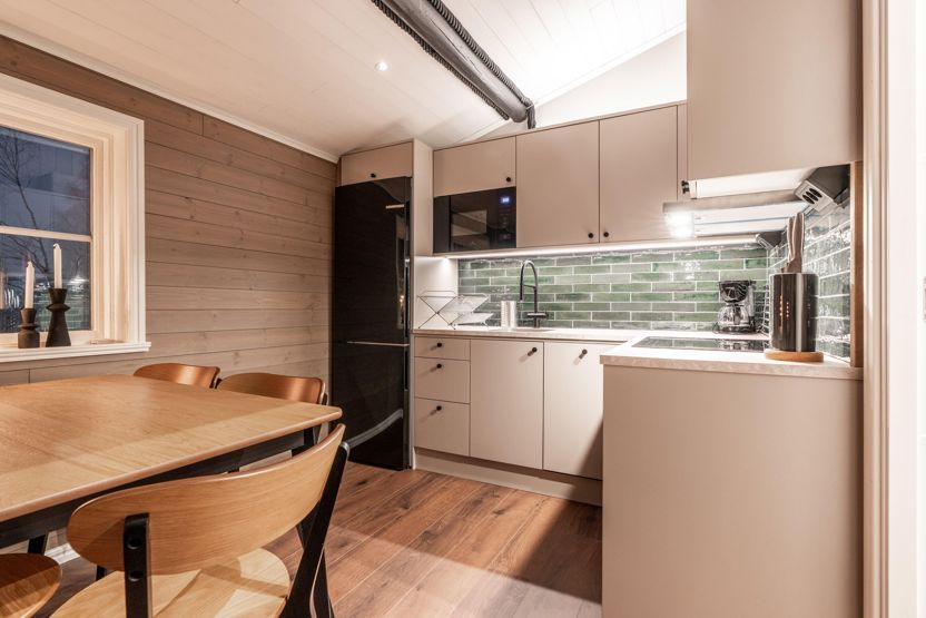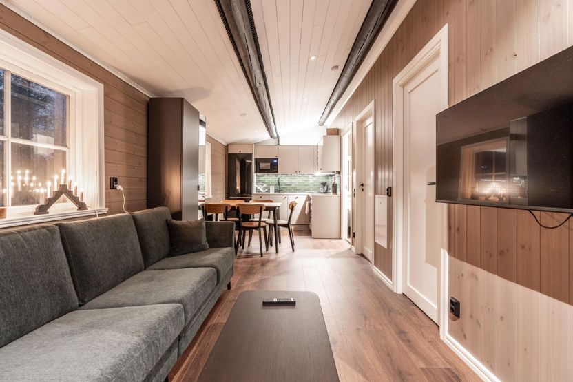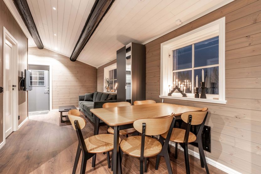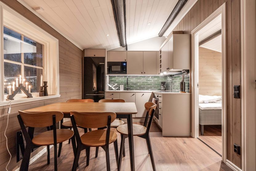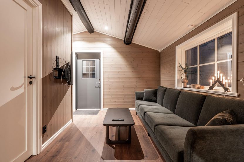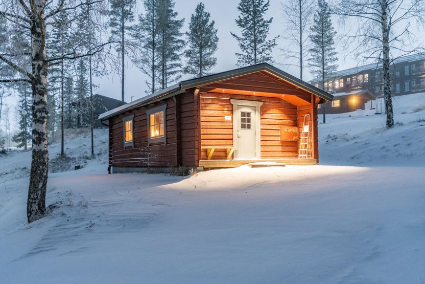 Här bor du i en mysig timmerstuga i Aktivitetsbyn med plats för 6 personer. Stugan har en öppen planlösning med köksavdelning, matplats och TV - hörna där du kan sjunka ner i soffan och låta en skön brasa värma dig efter dagens aktiviteter. Stugan har två sovrum. Sovrum 1 har två enkelsängar och två nedfällbara väggsängar, sovrum 2 har en våningssäng där underslafen är 105 cm bred. Köksavdelningen är utrustad med spis, micro och kylskåp med frysfack. Här finns WC och dusch. På utsidan hittar du motorvärmaruttag och låsbar skidförvaring. Rökning och husdjur är ej tillåtna. Laddning av elbilar är endast tillåtet vid avsedda laddningsstolpar. Boendet är utrustad med kodlås. Mellan klockan 15.00-17.00 på ankomstdagen kommer ett SMS med incheckningsinformation och låskod.