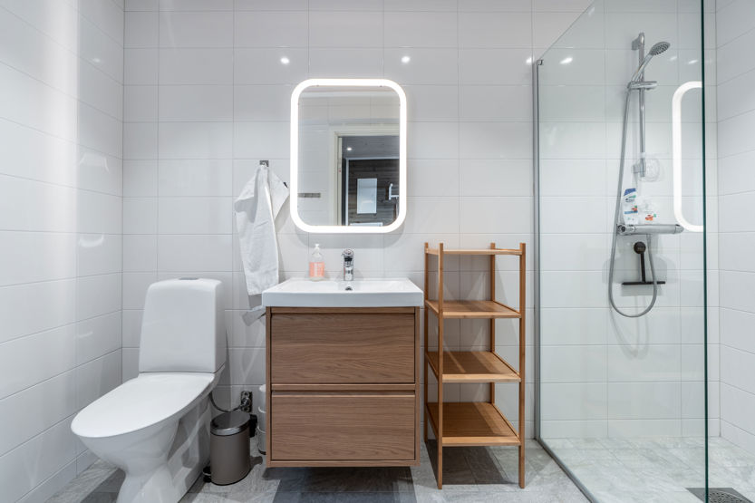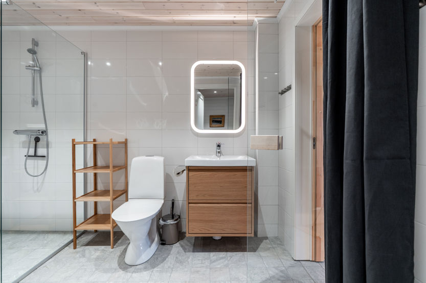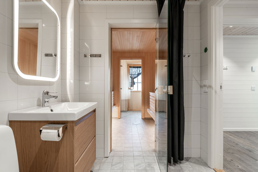Det finns 2 badrum med dusch och wc samt en bastu.