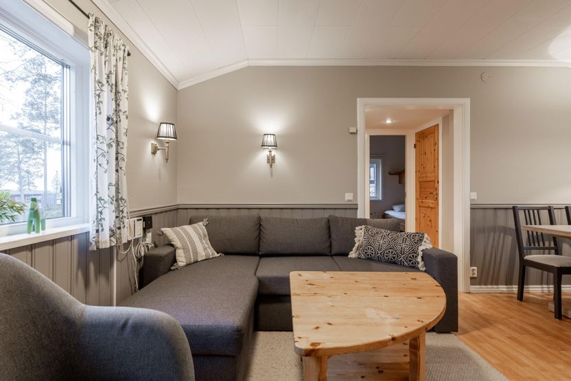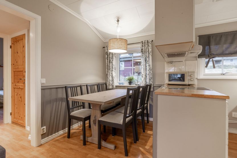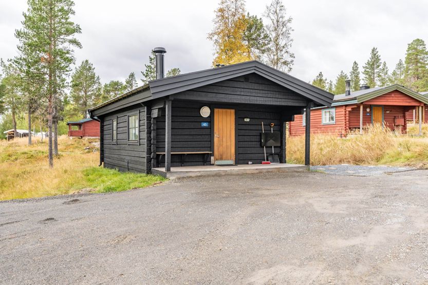 Timrad stuga i Skogsbyn med plats för upp till 6 personer. Stugan har en öppen planlösning med köksavdelning, matplats och TV - hörna där du kan sjunka ner i soffan och låta en skön brasa värma dig. Stugan har två sovrum. Sovrum 1 har två enkelsängar och två nedfällbara väggsängar, sovrum 2 har en våningssäng där underslafen är 105 cm bred. Köksavdelningen är utrustad med spis, mikrovågsugn och kylskåp med frysfack. Här finns WC och dusch. På utsidan hittar du motorvärmaruttag och låsbar skidförvaring. Rökning är ej tillåtet. Laddning av elbilar är endast tillåtet vid avsedda laddningsstolpar. Boendet håller en enklare standard.