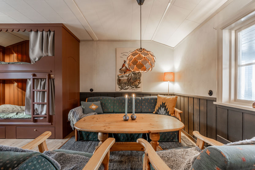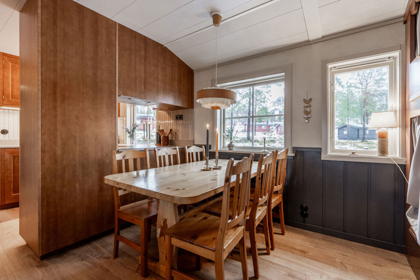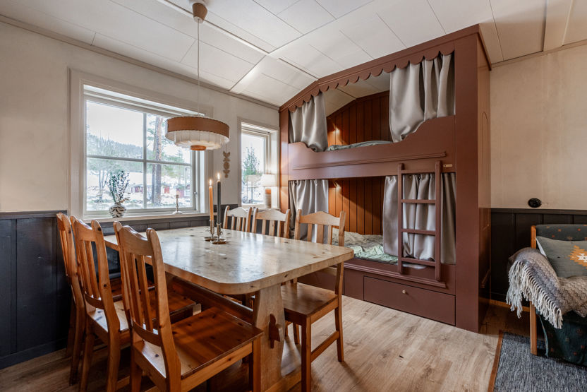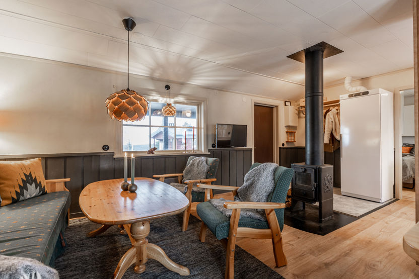 Køkkenalrummet er udstyret med komfur, mikrobølgeovn og køleskab med frostboks. Her er toilet og bruser. Udenfor finder I en motorvarmerstikdåse og aflåselig skiopbevaring. Rygning og kæledyr er ikke tilladt. Opladning af elbiler er kun tilladt ved de anviste ladestandere. Indkvarteringen er af en enklere standard.